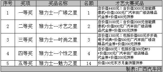 雅力士才藝大賽獎(jiǎng)項(xiàng)及獎(jiǎng)品