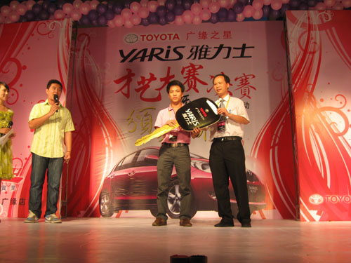 (廣西汽車網(wǎng) 訊)6月26日,廣汽豐田雅力士才藝大賽決賽暨雅力士系列活動(dòng)頒獎(jiǎng)典禮在廣汽豐田廣緣店隆重舉行,據(jù)編輯獲悉,此次才藝大賽決賽是全國所有豐田4S店同時(shí)舉行。其實(shí),早在6月17日備受矚目的全球暢銷緊湊車型豐田雅力士就在廣汽豐田廣緣店震撼上市了,為了迎接這個(gè)“美麗寶貝”的到來,廣緣店從五月份就開始舉行雅力士(參數(shù)配置 圖庫)上市的系列活動(dòng),其中包括昨晚的雅力士才藝大賽決賽、雅力士羽毛球賽、雅力士價(jià)格競猜以及可愛的雅力士寶貝評(píng)選活動(dòng)等。