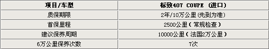 正式引入中國地區(qū)的標致407Coupe搭載是3.0升V6發(fā)動機。目前法國標致原廠為旗下標致407Coupe車型提供了2年10萬公里的質(zhì)保期限,在這段時間內(nèi)您的車輛出現(xiàn)任何質(zhì)量問題都可以遵循相應(yīng)規(guī)定到4S店進行檢測和索賠。購買該車后您的首次保養(yǎng)里程不要超過2500公里,此次保養(yǎng)只是進行一些常規(guī)檢查。在首保之后的每10000公里都要到4S店進行一次車輛保養(yǎng),若以總計行駛6萬公里計算共需要到4S店保養(yǎng)7次。標致407Coupe在法國地區(qū)保養(yǎng)歷程為2萬公里,但中國路況較差所以保養(yǎng)歷程縮短至1萬公里。