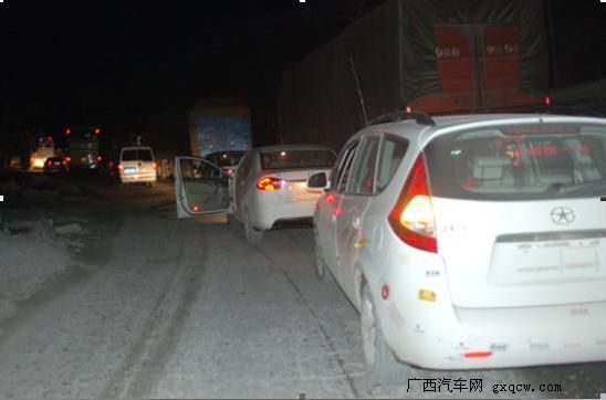 盡管山路險(xiǎn)要,可和悅的減震表現(xiàn)上佳,底盤扎實(shí)的做工讓車身即使是高速行駛也如履平地。這樣的路段從萬州一直持續(xù)到野三關(guān)附近,有些路段因?yàn)樾蘼罚磸?fù)單邊放行,十分難走,恩施附近的國道更被過往司機(jī)稱為“鬼門關(guān)”,是車禍頻發(fā)的“魔鬼”路段,有繞上繞下的九里十八彎,且急彎多、下坡長、路面質(zhì)量差。和悅車隊(duì)到達(dá)這里已經(jīng)是夜里8點(diǎn)多,無形中增加了安全隱患。其實(shí)這還不算什么,更讓我們惱火的是我們不幸在這里碰上了堵車。據(jù)當(dāng)?shù)囟凳鄯奖忝娴拇迕裾f,這次堵車從早上一直堵到晚上,雖然有交警疏通,仍然排了8公里長的車隊(duì)。在半山腰的盤山公路上,我們足足被堵了兩個(gè)小時(shí)挪不動窩。