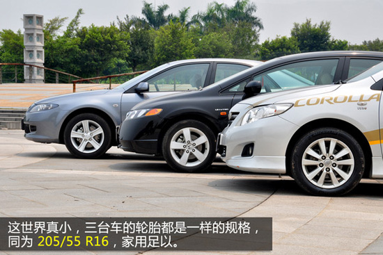 世界真小,三臺車的輪胎都是同一規(guī)格,同為205/55 R16,都是經濟型取向。205的輪胎寬度足以應對日常使用,但又不至于增加油耗。16寸的輪轂能滿足視覺上的需求之外,匹配的輪胎售價要比17寸的便宜近一半,有效降低日后的使用成本。