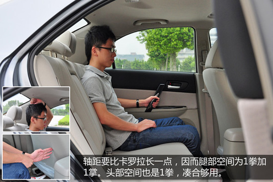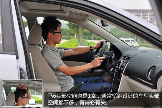 轎跑設(shè)計(jì)為了實(shí)現(xiàn)低重心,馬自達(dá)6的車內(nèi)高度受到一定的制約,頭部空間與卡羅拉一樣為1拳。軸距方面要比卡羅拉長(zhǎng)一點(diǎn),因而后排腿部空間為1拳加1掌。雖然跟思域比要小一點(diǎn),但若把軸距拉長(zhǎng),靈活性會(huì)有所犧牲,有利也有弊。