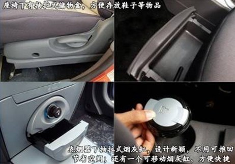 奇瑞A1雖然外觀小巧,但是腹內(nèi)寬敞,長(zhǎng)3700mm、寬1578mm、高1564mm、軸距為2390mm,這樣的尺寸不僅使A1擁有足夠的整體空間,還能使無論前排或后排的駕乘人員,都可以獲得滿意的頭部和腿部空間。另外,A1有13個(gè)之多的儲(chǔ)物空間,仔細(xì)探究,其獨(dú)具匠心的人性化設(shè)計(jì),會(huì)讓年輕的駕乘者有“非一般的感覺”。