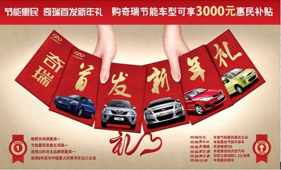 可以顯見,“節(jié)能惠民 奇瑞先行”活動的綜合發(fā)力和市場滲透,令奇瑞銷量增長迅猛,合作雙贏、信心堅定。基于“節(jié)能惠民 奇瑞先行”的強(qiáng)勁蓄力以及“節(jié)能惠民 奇瑞首發(fā)新年禮” 的強(qiáng)效推動,奇瑞完成全年70萬輛的銷售目標(biāo)已然在望。