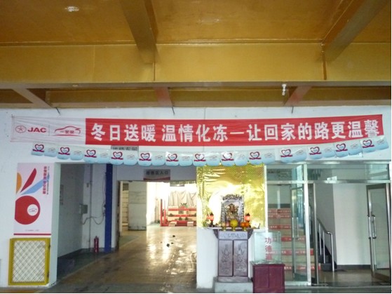 雖然今年是千年寒冬,但是江淮車(chē)主們卻倍感溫暖。11月20日,江淮汽車(chē)正式啟動(dòng)“親情四季”的冬日關(guān)懷服務(wù),今年的服務(wù)主題為 “冬日送暖 溫情化凍——讓回家的路更溫馨”,服務(wù)活動(dòng)將持續(xù)到2011年1月15日。