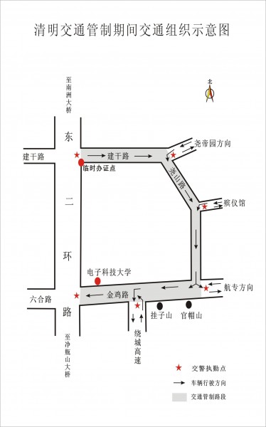 三、通行方向:管制路段內(nèi)的機(jī)動(dòng)車(chē)(含公交車(chē))一律由建干路北段進(jìn)入,經(jīng)靈田公路