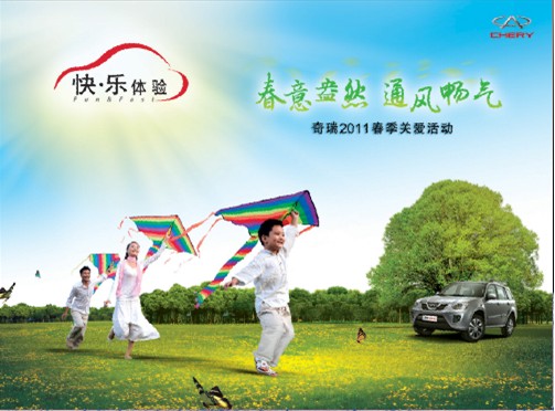 大地春分,萬(wàn)物復(fù)蘇。隨著季節(jié)的轉(zhuǎn)變,不少人都萌生了駕車踏青的興致。為了保障廣大客戶安全出行,充分享受春日的美好時(shí)光,奇瑞汽車特別在開(kāi)春之際為廣大客戶送來(lái)驚喜——4月1日至4月30日,“春意盎然 通風(fēng)暢氣”奇瑞2011年春季關(guān)愛(ài)活動(dòng)將在全國(guó)推出多重關(guān)愛(ài),與廣大客戶共迎春暖花開(kāi)。