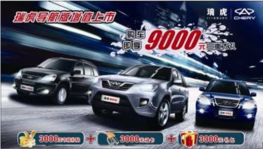 據(jù)4S店經(jīng)理介紹:“導(dǎo)航版車型的推出,使奇瑞瑞虎、A3、風(fēng)云2如虎添翼,再加上9000元大禮,性價(jià)比表現(xiàn)更加出眾,而且現(xiàn)在天氣越來越暖,正是自駕游的旺季,配備導(dǎo)航使出游變得更加便捷,DVD等功能還能豐富旅途,幫車主們省心省力。這些天來,市場(chǎng)和消費(fèi)者反響十分熱烈,來店咨詢和成交量都有大幅增長(zhǎng)。”導(dǎo)航版車型的推出很好的迎合了廣大消費(fèi)者的個(gè)性需求,也讓消費(fèi)者得到了更多的實(shí)惠,相信通過這種親民的營(yíng)銷策略,奇瑞汽車必將在“五一”前的銷售高峰取得不俗業(yè)績(jī)。