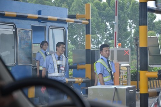 北流收費站的幾個工作人員對我們的車輛很感興趣;