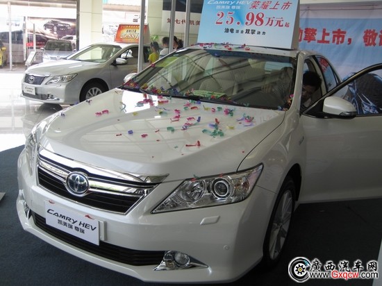 繼豐田中國(guó)今年3月隆重推出“云動(dòng)計(jì)劃”之后,廣汽豐田旋即邁出實(shí)質(zhì)性和具有里程碑意義的一步。,全新第七代凱美瑞的壓軸大作油電混合雙擎動(dòng)力“凱美瑞•尊瑞” 繼5月在廣州上市后,2012年7月14 日在南寧迅利江南店登陸南寧,正式與市民見面,2.5HG豪華版價(jià)格為25.98萬(wàn)元,2.5HV至尊版價(jià)格為28.98萬(wàn)元,2.5HQ旗艦版價(jià)格為32.98萬(wàn)元,這個(gè)極具誠(chéng)意、空前震撼的價(jià)格震動(dòng)車壇,一舉打破豪華混合動(dòng)力車型價(jià)格高不可攀的神話。
