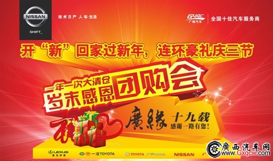 12月29日,廣緣東風(fēng)日產(chǎn)科園店要一起參加,廣緣歲末感恩團(tuán)購(gòu)會(huì),歲末一臺(tái)不留,廣緣大清倉(cāng),活動(dòng)期間,部分現(xiàn)車限量銷售,先到先得;29日晚上19:00,到廣緣雷克薩斯主會(huì)場(chǎng),還可品嘗美食,凡到場(chǎng),均可獲得新年禮品一份;到店小朋友還可參加大富翁互動(dòng)游戲,可獲得可愛公仔;最重要的是:活動(dòng)現(xiàn)場(chǎng)訂車,除了可享受團(tuán)購(gòu)價(jià)及大禮包外,現(xiàn)場(chǎng)還可抽獎(jiǎng)獲得團(tuán)購(gòu)禮!