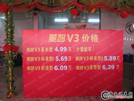 (廣西汽車網(wǎng) 訊)全新風(fēng)行菱智V3于1月19日在南寧康凱4S店震憾上市。并且在廣西各大4S店開始全面銷售,本次上市車型分為四款車型,基本型、標(biāo)準(zhǔn)型、舒適型、豪華型,銷售價(jià)格為4.99萬-6.39萬元,具體價(jià)格如下: