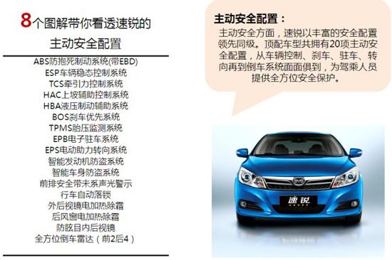 日前,中國汽車技術(shù)研究中心正式公布了第三批C-NCAP碰撞試驗成績,比亞迪速銳憑借卓越的主被動安全性能獲得五星安全評級,并榮膺最安全自主轎車。下面,筆者就比亞迪速銳在主被動安全配置及一些智能安全配置上的諸多亮點詳加解析。