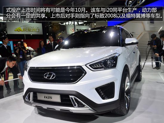北京現(xiàn)代全新小型—ix25,在本屆北京國際車展首發(fā)亮相。而正式投產上市時間將有可能是今年10月。該車與i20同平臺生產,動力部分會有一定的共享。上市后對手則指向了標致2008以及福特翼搏等車型......