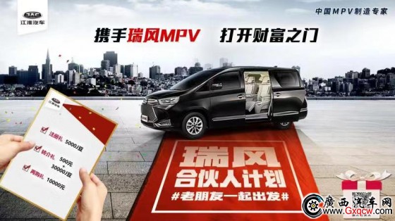 廣州站將是“瑞風合伙人”計劃招募的首站,預計在廣州率先打響第一槍之后,將為廣州乃至全廣東的消費者打開財富之門。以廣州為起點,該活動將在全國10大重點城市引爆,所有的瑞風MPV車主都將能參與到這個合伙人計劃中來。