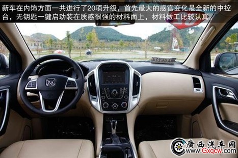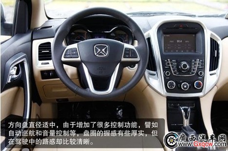 新馭勝S350內(nèi)飾顏色分黑色和米色兩種選擇,全系配備皮革座椅。我們的試駕車采用黑色內(nèi)飾配合銀色裝飾,中控臺表面采用軟性材料包裹。三幅運動型多功能真皮方向盤手感優(yōu)良,并配有八按鍵快捷鍵。集中了音響控制、定速巡航、藍牙電話等功能。整體來說,除了用料差異,新馭勝S350還是營造出了高端車氛圍。
