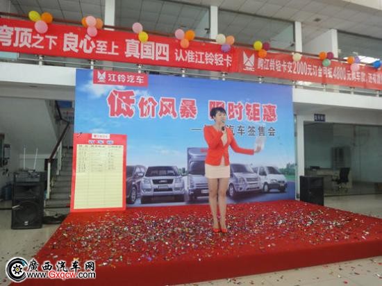 然而正式簽單會(huì)的時(shí)間也來臨,來自各行各業(yè)的客戶老板們自覺就坐入席。首先是靚麗的主持人登山舞臺(tái)為我們宣布活動(dòng)的正式開始,其次是宣讀本次簽單會(huì)各車系購(gòu)車享受優(yōu)惠政策。然而,一直以來江鈴汽車秉承省油、耐用的品質(zhì)深受廣大朋友們的認(rèn)可,面對(duì)如此超值購(gòu)車優(yōu)惠當(dāng)然毫不猶豫選擇訂購(gòu)。