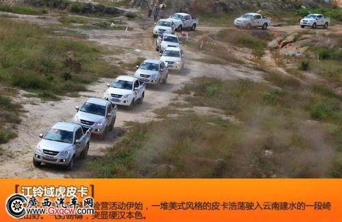 受到城市道路對貨車的限行規(guī)定,可能我并不能真正擁有一輛屬于自己的皮卡,但是我依然有非常高漲的熱情把它視為我從業(yè)以來最想得到的車型之一。最近一次,能夠與一堆美式風(fēng)格的皮卡相遇在云南的一段崎嶇山野里,是在江鈴汽車舉辦的JFX•域虎跨界體驗營活動中,與超過80位來自云南各地區(qū)的域虎車主們,一同體驗了這款大空間和高扭矩并重的皮卡所帶來的激情和愉悅。