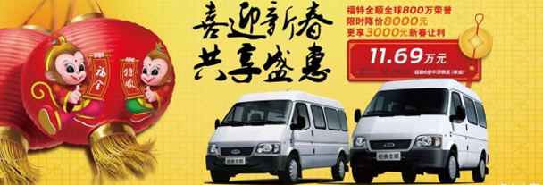 為慶賀新春佳節(jié),2016年1月1日-2月29日,購全順VE83任意一款物流或廂式車,即可享受3000元工廠降價 3000元現(xiàn)金優(yōu)惠。目前店內(nèi)有少量現(xiàn)車,歡迎前來選購。