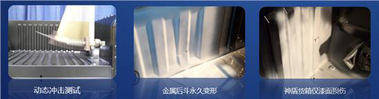 經(jīng)過實(shí)驗(yàn)證明,面對(duì)銳利的金屬鋼筋穿刺,金屬皮卡貨箱表面已留下凹痕和破洞,而神盾貨箱所留下的,就只有細(xì)微的劃痕,不足為慮。