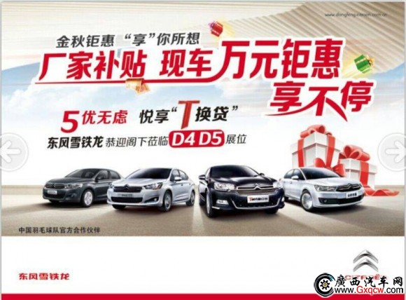 金秋鉅惠“享”你所想,本次北部灣車展東風雪鐵龍——廠家補貼現(xiàn)車萬元鉅惠享不停,5優(yōu)無慮 悅享“T換貸”。