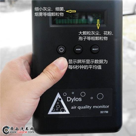 俗話說,工欲善其事必先利其器。我們使用的測試儀有兩種數(shù)據(jù)(如下圖),左邊的為直徑小于0.5微米的小顆粒物(如細(xì)小灰塵、細(xì)菌、煙霧等細(xì)顆粒物)每0.01立方英尺中的數(shù)量;右邊的是直徑大于2.5微米的大顆粒物(如大顆;覊m、花粉、孢子等粗顆粒物)每0.01立方英尺中的數(shù)量。這些都是對人體呼吸道系統(tǒng)有嚴(yán)重影響的東西。