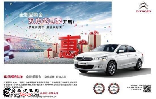 榮耀兩周年,不僅是雪鐵龍雙杰全新愛麗舍和全新世嘉產(chǎn)品力所致,更是源于消費(fèi)者的信賴有加,值此雙慶盛惠季,各種禮遇不斷,各位心動(dòng)不如行動(dòng)。