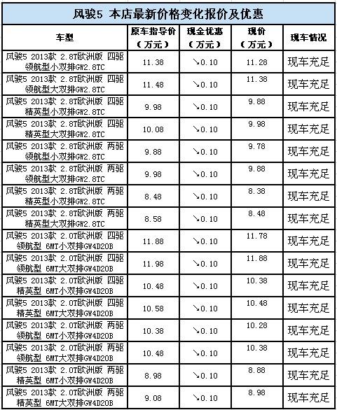 滿城歡樂迎新年,長道送福祝團(tuán)圓。2013年,在進(jìn)駐廣西的三年里,廣西長道汽車就以**一步的服務(wù)宗旨贏得了廣大車友的信賴、支持與厚愛,取得了“長城汽車全國標(biāo)桿店”的榮譽(yù)稱號(hào)。在新年來臨之際,廣西長道特推“瘋狂大促,年末狂歡”現(xiàn)車銷售活動(dòng),讓您享到全年*低價(jià)。2013款長城風(fēng)駿5歐洲版現(xiàn)金優(yōu)惠1000元,更有年終限量禮包。心動(dòng)不如行動(dòng),讓我們一起把愛帶回家過年吧!