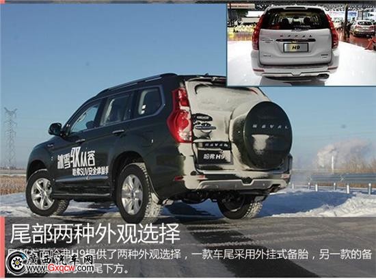 尾部方面哈弗H9提供了兩種外觀選擇,一款車尾采用外掛式備胎,另一款的備胎則被放置在了車尾下方,對(duì)于越野愛好者來說,外掛式備胎無論是視覺效果還是功能性方面都更受青睞。