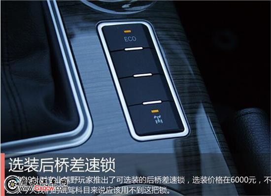 哈弗H9針對(duì)專業(yè)越野玩家推出了可選裝的后橋差速鎖,選裝價(jià)格在6000元,不過這個(gè)配置更加適用于穿越炮彈坑、交叉軸等復(fù)雜路況,以今天我們的試駕科目來說應(yīng)該用不到這把鎖。