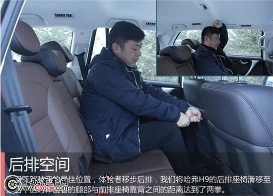 體驗(yàn)者身高178CM,坐在駕駛席調(diào)整好坐姿,手腕位置與方向盤齊平,頭部空間剩余一拳,腿部與駕駛臺(tái)的空間也足夠充裕。在保證駕駛座位置,體驗(yàn)者移步后排,我們將哈弗H9的后排座椅滑移至*后,這時(shí)體驗(yàn)者的腿部與前排座椅靠背之間的距離達(dá)到了兩拳,這樣的空間表現(xiàn)與同級(jí)競(jìng)品相比中規(guī)中矩。