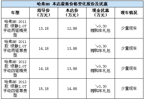 為了感謝廣大長(zhǎng)城SUV車友對(duì)我司的支持,現(xiàn)特針對(duì)長(zhǎng)城汽車哈弗H6柴油2.0T車型,開展每周限量特價(jià)活動(dòng),每周特價(jià)車型數(shù)量有限,*高直降3000元。另送豪華加裝禮包。!感興趣的朋友可以到店咨詢或致電咨詢!緩V西長(zhǎng)道:安吉4S店 0771-2330301;白沙4S店 0771-5780390;安吉直營(yíng)店 0771-3922501】