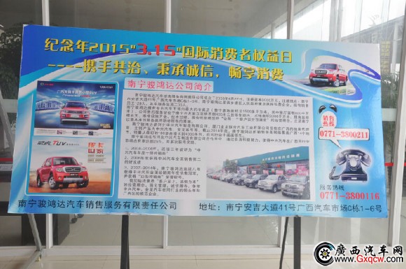 今天,自治區(qū)工部門與廣西汽車市場聯(lián)合舉辦以“攜手共治·維護(hù)誠信·暢享消費(fèi)”為主題的座談會。旨在倡議商戶在日常經(jīng)營過程中以《消費(fèi)者權(quán)益法》為基本準(zhǔn)繩,做到誠信經(jīng)營,童叟無欺!