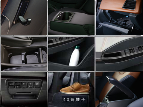 5、豐富且實用的儲物空間,后排中間的位置可以放下43碼的鞋子,讓第二排的乘客不再憋屈。打破常規(guī)的超大手套箱,可以放下44碼的運動鞋一雙。