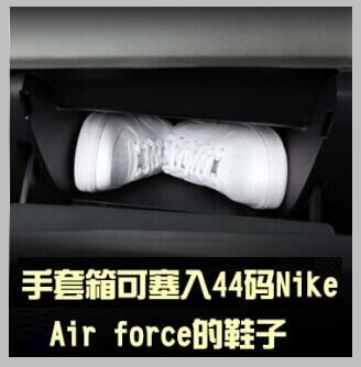 納智捷銳3手套箱完全打破小型車的常規(guī),手套箱不再是雞肋的擺設(shè),經(jīng)過設(shè)計師的精心設(shè)計,納智捷銳3的手套箱完全可以放入一雙44碼的運動鞋,將空間利用到了極致。