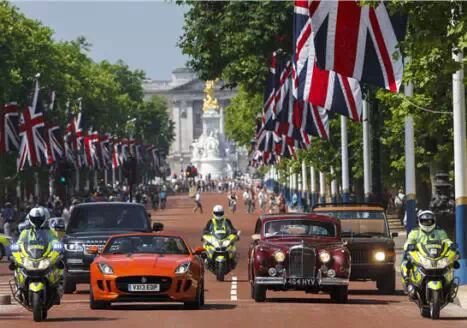 2013年7月,為慶祝女王加冕60周年,包括1955年款捷豹Mark VIIM轎車、1961年款捷豹E-TYPE系列等多款與英國(guó)王室有不解之緣的捷豹車,沿著他們?cè)?jīng)歷過的1953年女王加冕儀式慶祝路線,穿越一系列倫敦地標(biāo),抵達(dá)倫敦白金漢宮慶典花園。