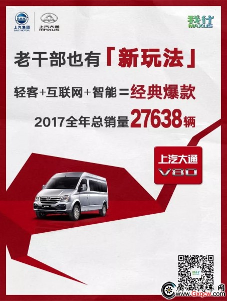 在輕客市場,上汽大通V80憑借自身產(chǎn)品優(yōu)勢,取得了全年銷量27638輛的不俗表現(xiàn)。為了順應(yīng)互聯(lián)網(wǎng)時(shí)代的發(fā)展,2017年12月上市的2018款上汽大通V80搭載了智能互聯(lián)系統(tǒng),成為了輕客市場的“爆款”,引領(lǐng)寬體輕客進(jìn)入2.0時(shí)代。