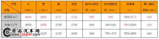 大家購(gòu)車時(shí),挑選SUV車型都是愛(ài)它的“大肚量”。在車身尺寸和空間的對(duì)比中,三款車的空間表現(xiàn)一目了然。我們發(fā)現(xiàn)AX7幾乎囊括了所有空間硬指標(biāo)的榜首,帶給用戶更為寬敞舒適的乘坐體驗(yàn)。同時(shí),東風(fēng)風(fēng)神AX7與長(zhǎng)安CS75的后備箱容積均超過(guò)了560L,AX7放倒后排座椅后更是能達(dá)到1572L的超大空間,絕對(duì)能讓您免去長(zhǎng)途旅行的后顧之憂。