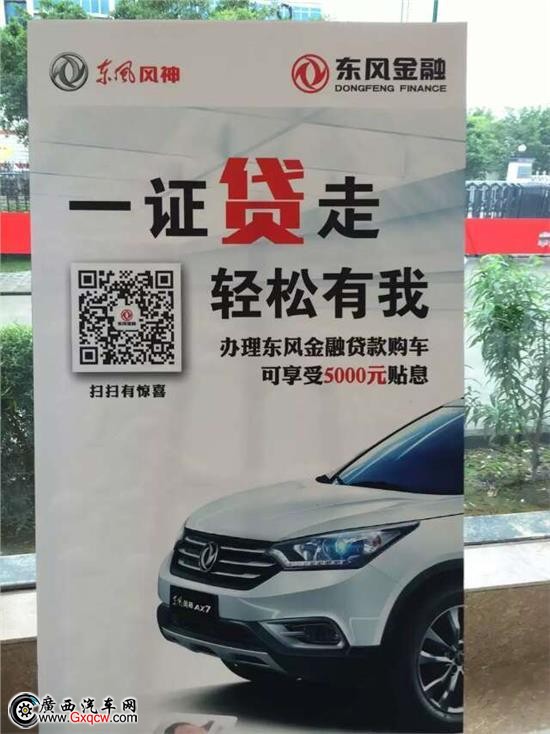 18-19日華南城車展,按揭購買東風(fēng)風(fēng)神AX7車型,統(tǒng)一補(bǔ)貼5000元,按揭材料只需個(gè)人身份證一張。4小時(shí)就可審批,3天就可以提車,開一個(gè)星期磨合新車,國(guó)慶期間一家人就可以長(zhǎng)途出游了。